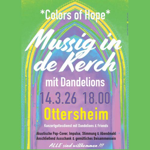 Herzlichen Dank an Sandra Ruffing und den Dandelions and Friends für die musikalische und gesangliche Gestaltung des Abends, der mit fast 20 thematisch abgestimmten Liedbeiträgen von "The Who" bis zum "Musical Hair" reichte und diesen Gottesdienst zu einem ganz besonderen Erlebnis werden ließ.