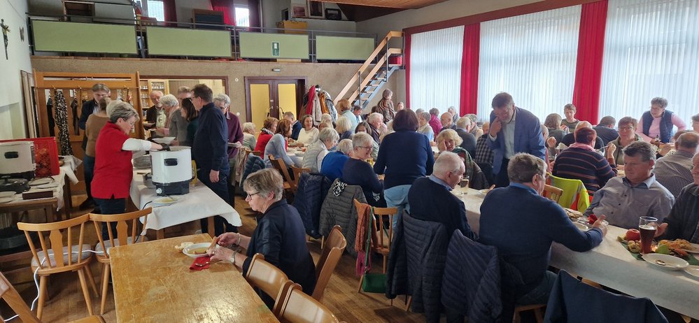 Kein Wunder, dass sich das dann im Pfarrheim fortsetze, wo die Göllheimer LandFrauen uns ein wunderbares Mittagessen gezaubert hatten.