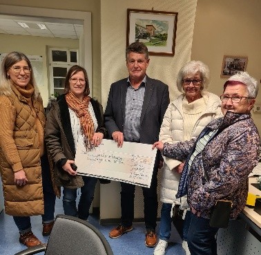Der Erlös der Spenden geht in diesem Jahr an die Ortsgemeinde Göllheim für die örtlichen Spielplätze und/oder Jugendarbeit der Gemeinde. Es kam eine stattliche Summe von 630,- € zusammen. Das Team der LandFrauen überreichte Herrn Hartmüller die Spende in seinem Büro. Er war sehr erfreut darüber. Die örtlichen Spielplätze müssen saniert werden und im Neubaugebiet wird noch ein neuer Spielplatz angelegt. Auch wird die Jugendarbeit unterstützt.