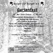 Der Bürger für Bürger e.V. lädt herzlich ein am 10. Mai 2026 ab 11.00 Uhr zum Gartenfest im BfB-Garten Harxheim. Um 11.30 Uhr feiern wir einen Ökumenischen Gottesdienst mit Segnung des BfB-Gartens. Es schließt sich... weiterlesen