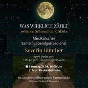 Die Protestantische Gemeinde Göllheim lädt herzlich ein zum: Musikalischen Samstagabendgottesdienst mit Severin Günther zum Leitthema WAS WIRKLICH ZÄHLT zwischen Sehnsucht und Stärke Das Repertoire präsentiert unter... weiterlesen