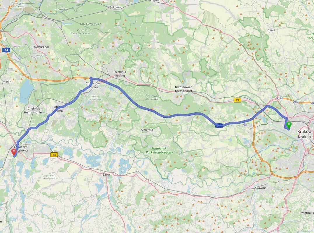 | 05:30 | Abfahrt nach Auschwitz-Birkenau | Distanz: 65,0 km • Fahrzeit: 2h [Berufsverkehr/Staus zu der Zeit] |
