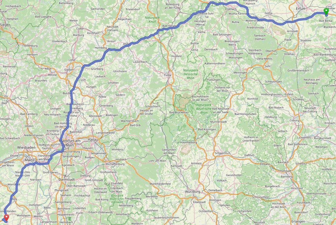 | 12:00 | Abfahrt nach Göllheim | Distanz: 236km • Fahrzeit: 4h |