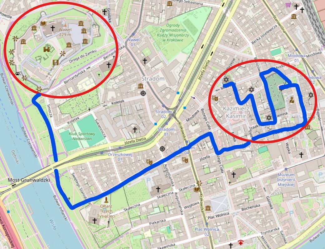Nach der Besichtigung der Burg [1. und 2. Stockwerk] und der Burgkathedrale des Hl. Stanislaus und Hl. Wenzels werden wir auf dem Burgkomplex noch etliches über die Geschichte Krakaus und Polens hören, bevor wir uns aufmachen nach Kazimierz, dem jüdischen Viertel Krakaus.