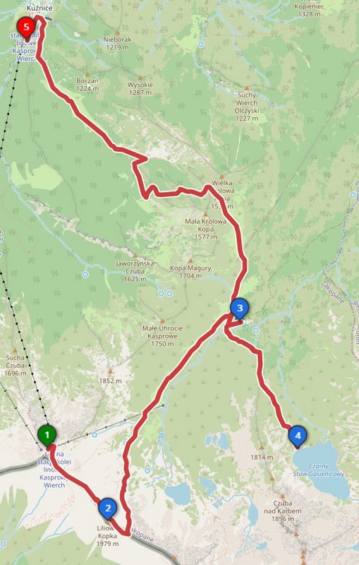 | 07:45 | Abmarsch zur Talstation der Kasprowy Wierch-Seilbahn | Distanz: 120m • Gehzeit: 10 min |