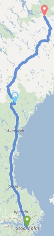 07:00 | Abfahrt nach Sollefteå, Restaurant Diana | Distanz: 377km Dauer: 4h30min |