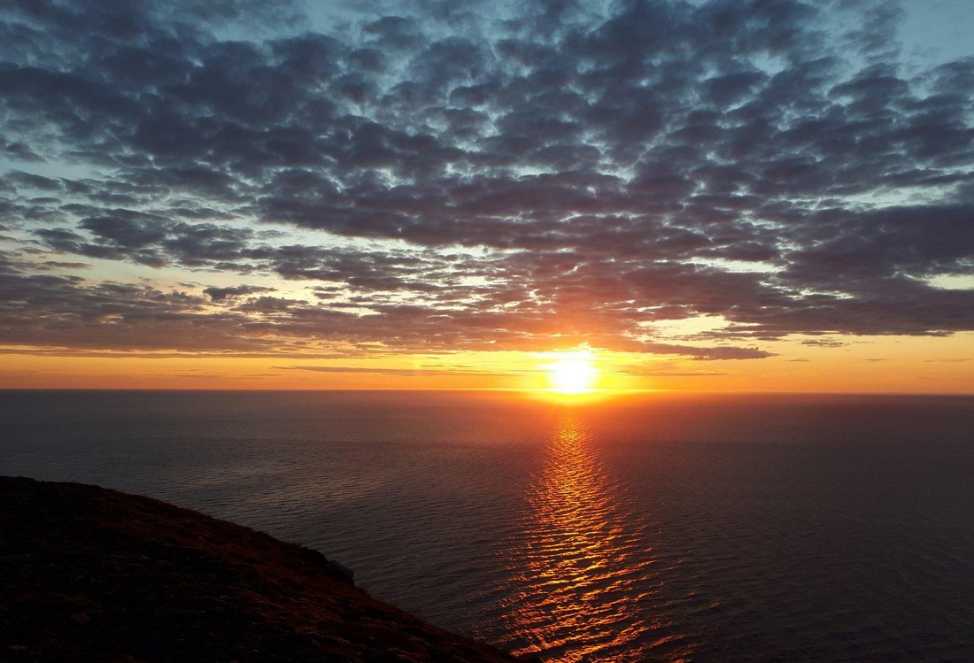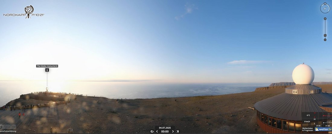 00:00 | Mitternachtssonne Um Mitternacht werden wir auf das Naturschauspiel anstoßen und sehen, wie stark man die Erdrotation auch sehen kann. Das sieht man an den Polen der Erde eher als in unserer Region. Und es ist auch faszinierend, wie hell es dann noch ist. Jede*r kann dann verbleiben wie sie/er möchte. Ihr könnt auch entscheiden, ob Ihr um Mitternacht Hl. Messe feiern möchtet, oder erst einige Stunden später an frühen Morgen, bevor wir wieder zurückfahren. Essen und Trinken haben wir dabei und ihr könnt jederzeit essen und trinken, wann es Euch danach ist. Warmen Kaffee oder Tee würden wir in den Nordkapphallen holen. | Es gibt keine Garantie für die Sichtbarkeit der Mitternachtssonne. Bis auf einmal, als kurz vor Mitternacht heftiger und kalter Nebel aufzog, habe ich die Mitternachtssonne immer gesehen. Also bitte nicht enttäuscht sein, wenn zwar taghell ist, aber die Sonne nicht gesehen werden kann. Es kommt manchmal leider vor. Allerdings kommt es auch vor, da das Wetter am Nordkapp sich in Windeseile immer ändert, dass Nebel aufzieht, sich aber auch wieder genauso schnell verzieht. Hier geht's zur Webcam. |