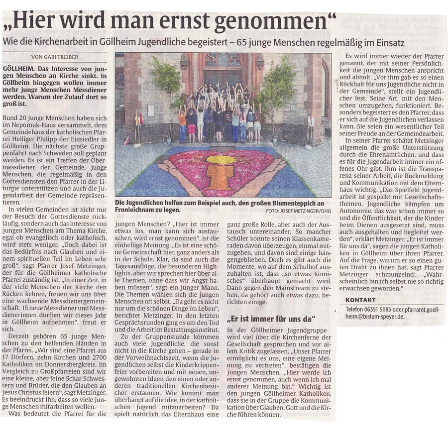 Bericht über unsere Jugend in der "Rheinpfalz"