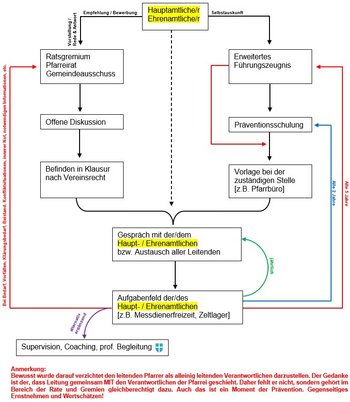 Für die Aufklärung und Schulung der Ehrenamtlichen ist die Pfarrleitung verantwortlich. Dazu zählen die Räte, der leitende Pfarrer und das Verantwortlichenteam [siehe Punkt 4.1 und 4.5].