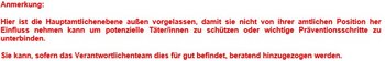 - Eine entsprechende Schulung der leitenden Personen, um dies zu erkennen und adäquat zu entscheiden und zu handeln, ist obligatorisch.